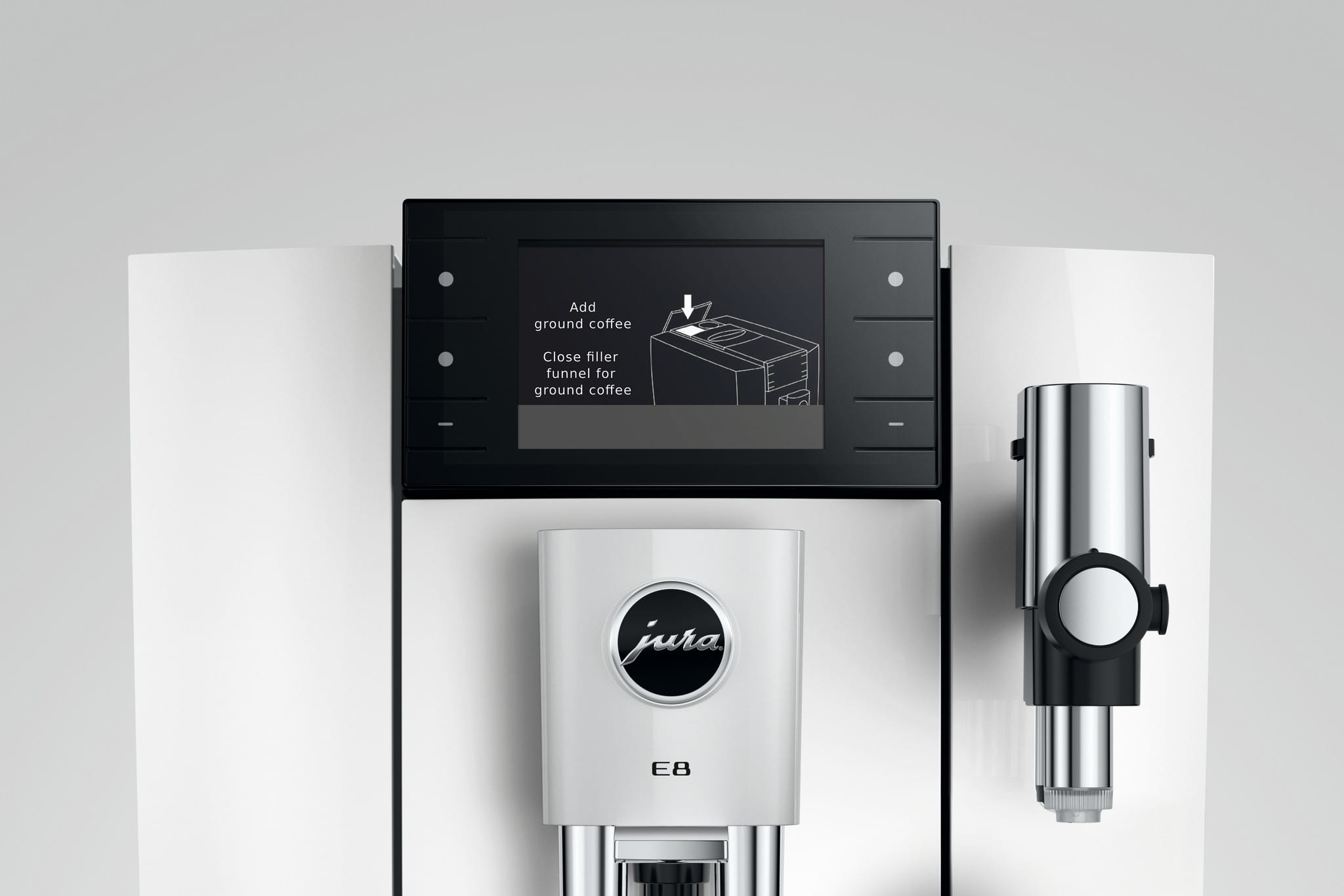Model E8 wyróżnia się stylem, a dzięki szerokości 27 cm doskonale sprawdza się nawet w mniejszych kuchniach – zarówno pod względem wzornictwa, jak i doznań kawowych.